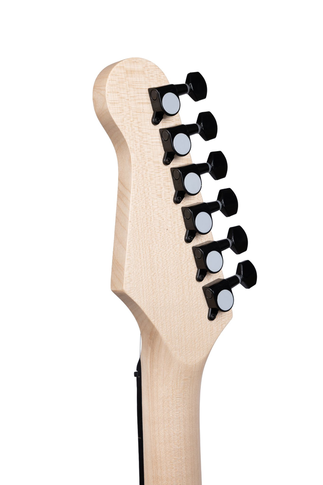 La ST1-NJR è pensata per i principianti che desiderano uno strumento vero per iniziare a suonare correttamente. È leggera, facile da impugnare e comoda anche per i musicisti più piccoli. Il corpo è in legno di Pawlonia, il manico in acero ha una sottile forma a C e la tastiera Tech Ebony è fluida e veloce. Con tre pickup single-coil Birdy II in configurazione SSS e un selettore a 5 posizioni, si ottiene un'ampia gamma di suoni di chitarra elettrica classici, ideali per rock, blues, pop o funk. Un ponte tremolo aggiunge ancora più divertimento per suonare in modo creativo.